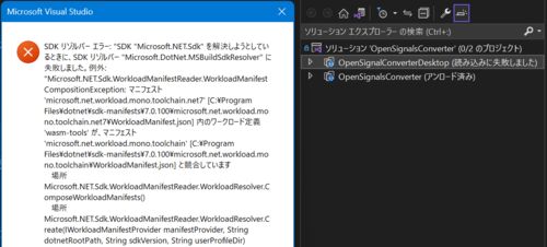 問題点 Visual Studio 2022 のバージョンを 17.4.0 にアップデートすると、既存のプロジェクトを開けないだけでなく、プロジェクトを新規作成してもソリューションとして作成されずに何もできなくなる。 SDK リゾルバー エラー: "SDK "Microsoft.NET.Sdk" を…